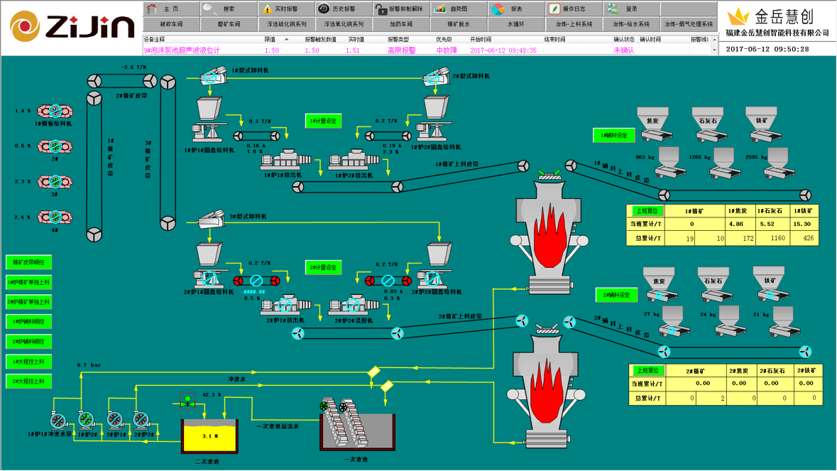冶炼自动化系统实现对冶炼全厂各子项工艺参数的检测和控制,对全厂各生产工艺过程实施有效的、高水平的自动控制。控制范围包括从精矿原矿及辅助材料进厂至产品、硫酸产品及副产品出厂全过程的生产及辅助设施。主要包含以下区域:
