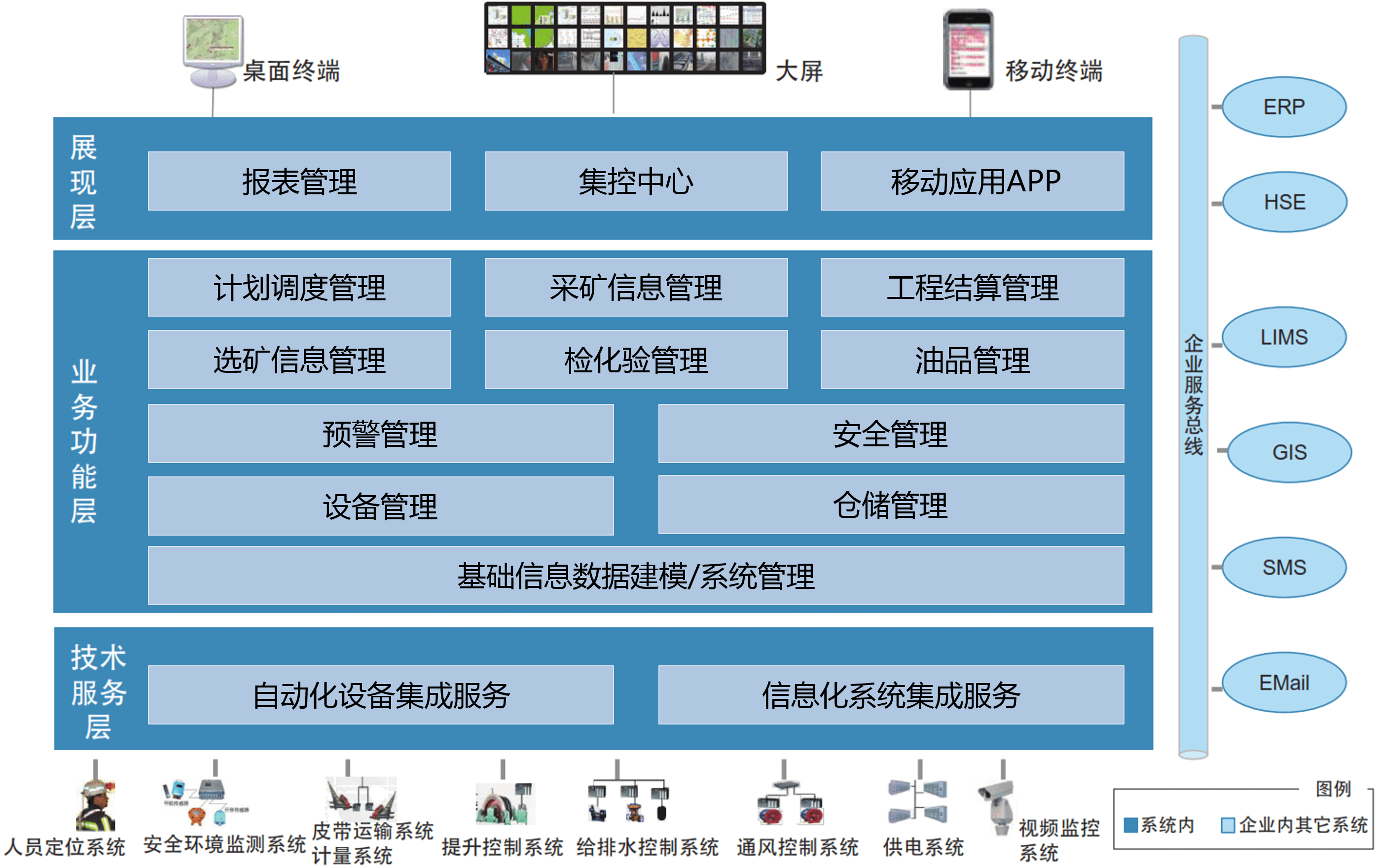 以数字矿山万物互联为基本原则,提供系统集成技术服务和高度集成平台