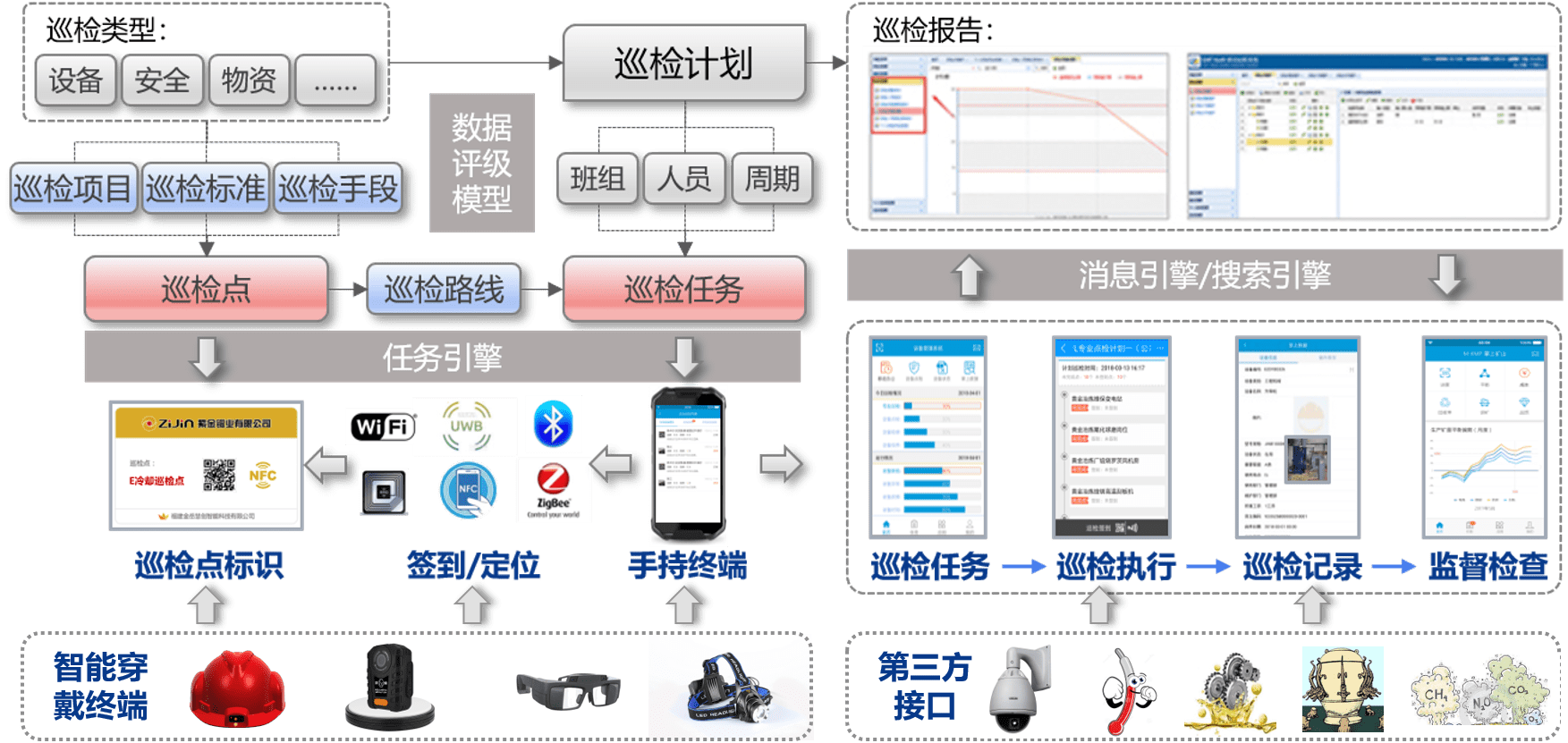 金岳慧创云巡检系统是一套专门针对日常巡视检查工作的管理系统,基于互联网技术,通过移动端和云应用端的配合,以及多样化具有定位、感知、预警和音视频通讯功能的一体化智能穿戴产品,解决巡检现场作业过程中的问题,实现巡检数据采集的网络化和存储的安全化,真正实现智能化巡检管理。