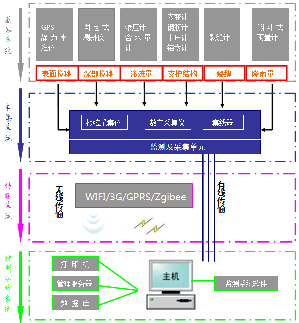 边坡在线监测系统主要有以下几部分组成: