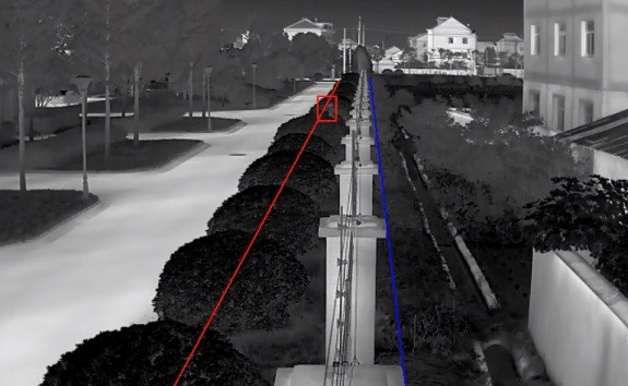 在画面中设定相应的警戒线,当有物体穿过警戒线时,将触发穿越警戒线报警规则,热成像摄像机会立即发出报警信号。
